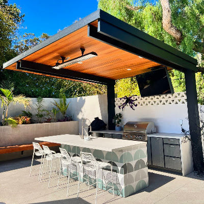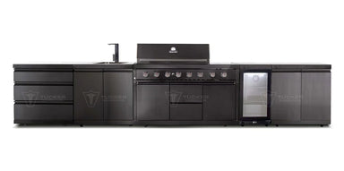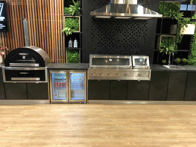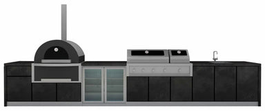 Outdoor Kitchen Colours & Materials Benchtop: Ossido Nero (porcelain)Doors: Ossido Nero (porcelain)Doors Trim: Black Appliances included in thi...